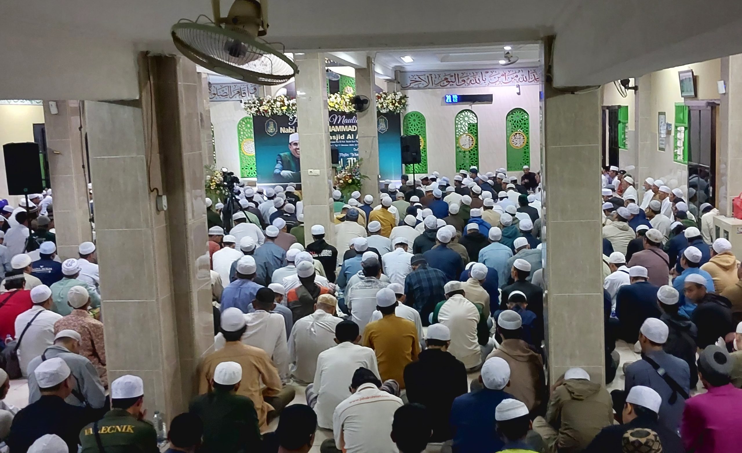 Peringatan maulid Nabi Muhammad SAW di Masjid Al Azhar ini dihadiri oleh alim ulama, tokoh masyarakat serta ratusan jamaah.