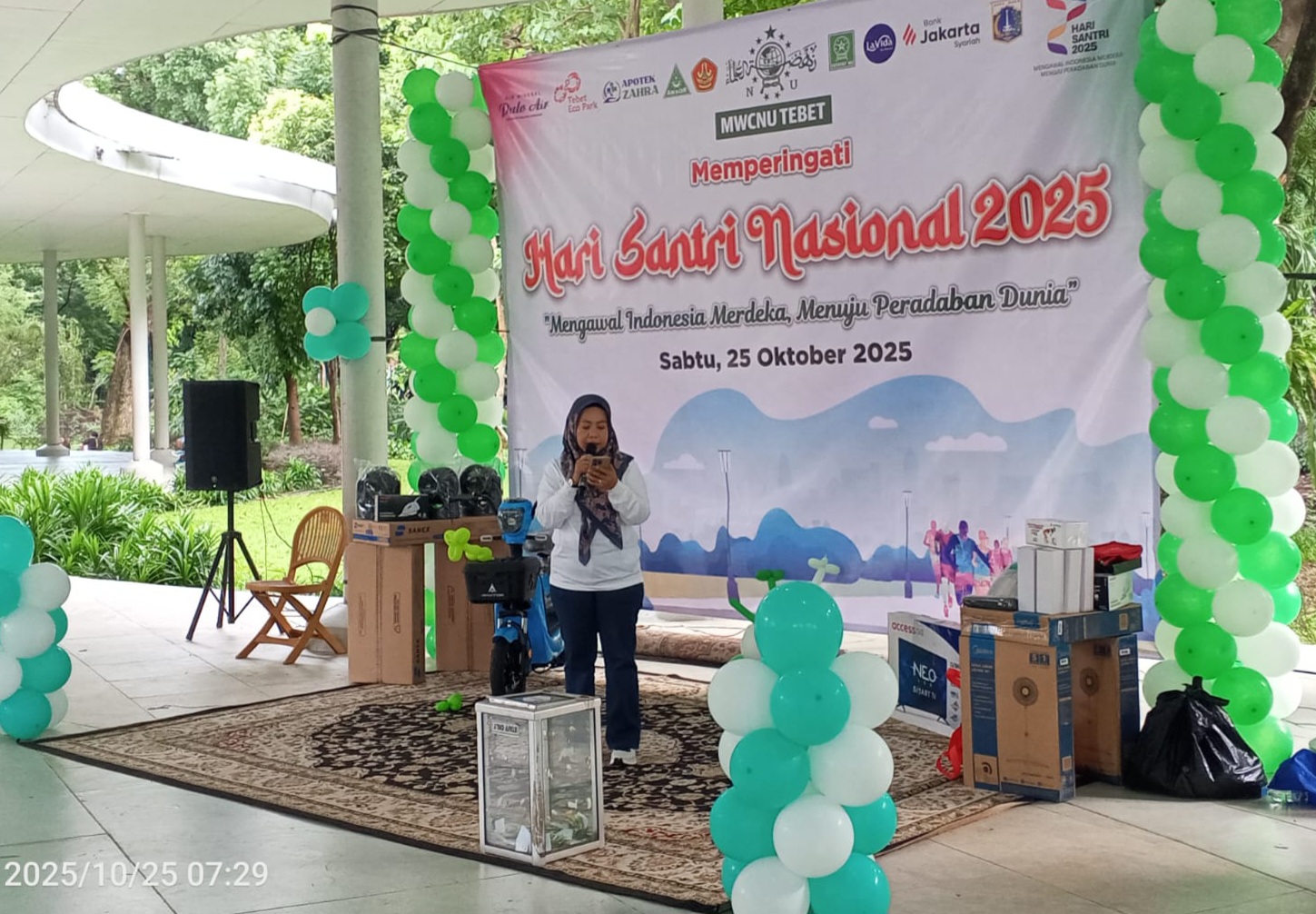 ” Bicara hari santri maka kita bicara kyai dan ulama ” kata Ustad. H. Lukman Mashuri , Ketua Tanfidzhiah NU Kec.Tebet , pada pelaksanaan peringatan hari santri nasional yang diselenggarakan oleh MWC NU Tebet ,di Taman Ecopark ,Kel.Tebet Barat (Sabtu,25/10/2025), beliau menjelaskan peranan Kyai dan Ustad dalam membentuk santri dan memompa semangat perjuangan saat agresi Belanda ke 2 di Surabaya ,yang mana pada puncaknya melahirkan ” Pahlawan Santri ” yakni Bung Tomo pada 10 november ,Kepahlawanan Bung Tomo , para santri dan masyarakat umum lainnya didasari oleh resolusi Jihad Kyai dan Ulama Jawa Timur yang di fatwakan oleh Pendiri Nahdlatul Ulama , hadratussyaikh KH . Hasyim As’ari pada tanggal 22 Oktober 1945.