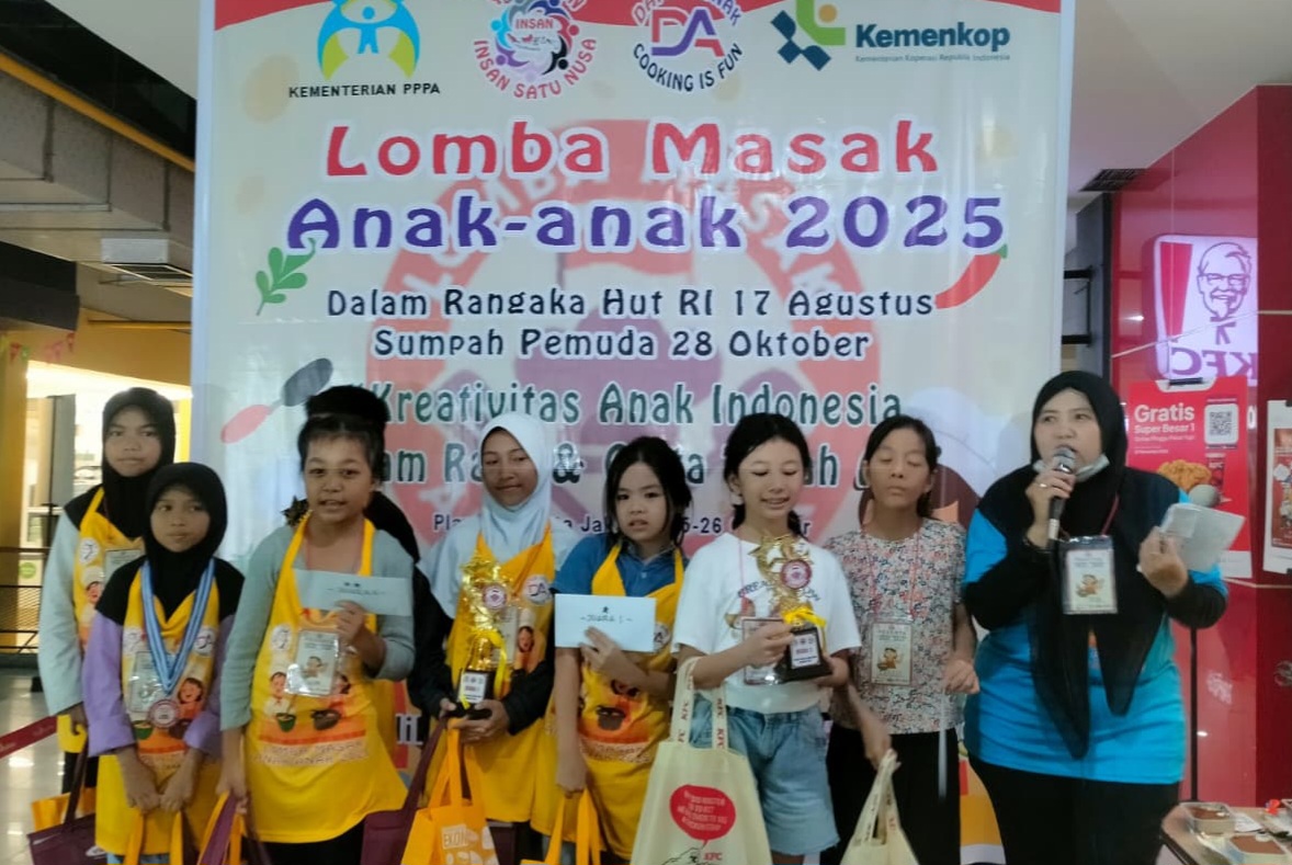 Jakarta, — Suasana meriah dan penuh semangat kebangsaan terasa di area Plaza Kalibata, Jakarta Selatan, saat Yayasan Insan Satu Nusa bekerja sama dengan Dapur Anak menyelenggarakan kegiatan Lomba Masak Anak-Anak dengan tema “Kreativitas Anak Indonesia dalam Rasa dan Cinta Tanah Air.